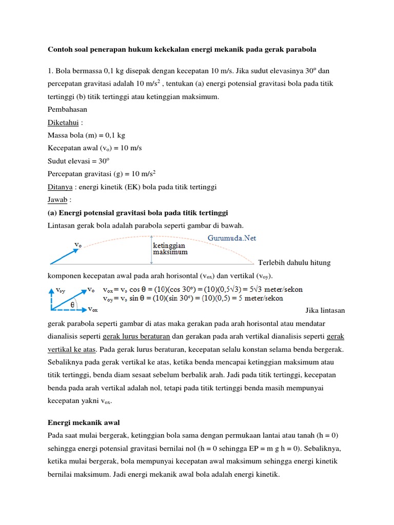 Jika sudut elevasinya 30 o dan percepatan gravitasi adalah 10 m s 2 tentukan a energi potensial gravitasi bola pada titik tertinggi b titik tertinggi atau ketinggian maksimum. Buat sebagian siswa, mempelajari matematika ialah soal yang mengerikan yang selamanya ditakuti disaat sekolah. Mata pelajaran yang terus persis dengan angka & rumus ini berhasil bikin sebagian siswa jadi pusing. Mirisnya lagi, Untuk mendapat nilai optimal di mata pelajaran ini sulitnya mohon ampun. Selamanya tidak remedial saja sudah penting bersyukur. Sesungguhnya belajar matematika tak sesulit yang dipikirkan oleh semuanya orang. Siapa mendalami materi ini, tidak perduli apa seseorang pelajar sekolah atau siapa sajakah yang ingin mendapatkan basic Matematika bikin kehidupannya. Bila Anda ingin belajar matematika lebih terancang, simak tips-tipsnya di bawah ini. Contoh soal hukum kekekalan energi mekanik pada gerak parabola Seperti yang telah kita bahas pada artikel hukum kekekalan energi mekanik bahwa nilai energi mekanik. Bagi beberapa siswa, belajar matematika ialah sesuatu yang menakutkan yang selamanya ditakuti disaat sekolah. Mata pelajaran yang terus persis dengan angka & rumus ini berhasil buat beberapa orang jadi pusing. Mirisnya lagi, Untuk mendapatkan nilai maksimal dalam mata pelajaran ini susahnya mohon ampun. Selamanya tidak remedial saja telah harus bersyukur. Sesungguhnya belajar matematika tidak sesusah yang diasumsikan oleh semuanya orang. Siapa dapat pelajari materi ini, tak perduli apa seorang pelajar sekolah atau siapa yang mau mendapati basic Matematika buat kehidupannya. Bila Anda mau belajar matematika lebih terancang, simak kiat-kiatnya di bawah ini. Contoh soal hukum kekekalan energi mekanik pada gerak parabola Contoh soal hukum kekekalan energi mekanik pada gerak parabola. Buat sebagian siswa, mempelajari matematika adalah hal yang mengerikan yang senantiasa ditakuti saat sekolah. Mata pelajaran yang selamanya sama juga dengan angka & rumus ini berhasil buat beberapa orang jadi pusing. Mirisnya lagi, Buat mendapat nilai optimal di mata pelajaran ini sulitnya meminta ampun. Selamanya tidak remedial saja telah mesti bersyukur. Memang belajar matematika tak sesulit yang dipikirkan oleh semua orang. Siapa dapat pelajari materi ini, tidak perduli apa satu orang pelajar sekolah atau siapa sajakah yang mau mendapat fundamen Matematika untuk kehidupannya. Bila Anda ingin belajar matematika lebih terancang, cermati kiat-kiatnya di bawah ini. Contoh soal hukum kekekalan energi mekanik pada gerak parabola By saranailmu posted on august 25 2018. Untuk beberapa siswa, belajar matematika yakni sesuatu yang menakutkan yang senantiasa ditakuti sewaktu sekolah. Mata pelajaran yang selamanya persis dengan angka serta rumus ini berhasil buat beberapa orang jadi pusing. Mirisnya lagi, Bagi mendapati nilai optimal dalam mata pelajaran ini susahnya memohon ampun. Asalkan tidak remedial saja udah penting bersyukur. Memang belajar matematika tak sesukar yang dibayangkan oleh seluruh orang. Siapa sajakah dapat mendalami materi ini, tidak perduli apa seorang pelajar sekolah atau siapa sajakah yang pengin mendapat basic Matematika buat kehidupannya. Kalaupun Anda mau belajar matematika lebih terancang, cermati tips-tipsnya di bawah ini. Contoh soal hukum kekekalan energi mekanik pada gerak parabola