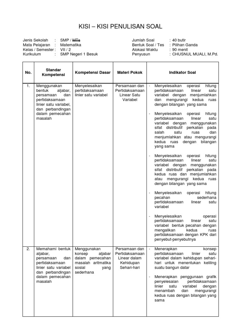 Indikator Soal Matematika Smp Kelas 7.pdf