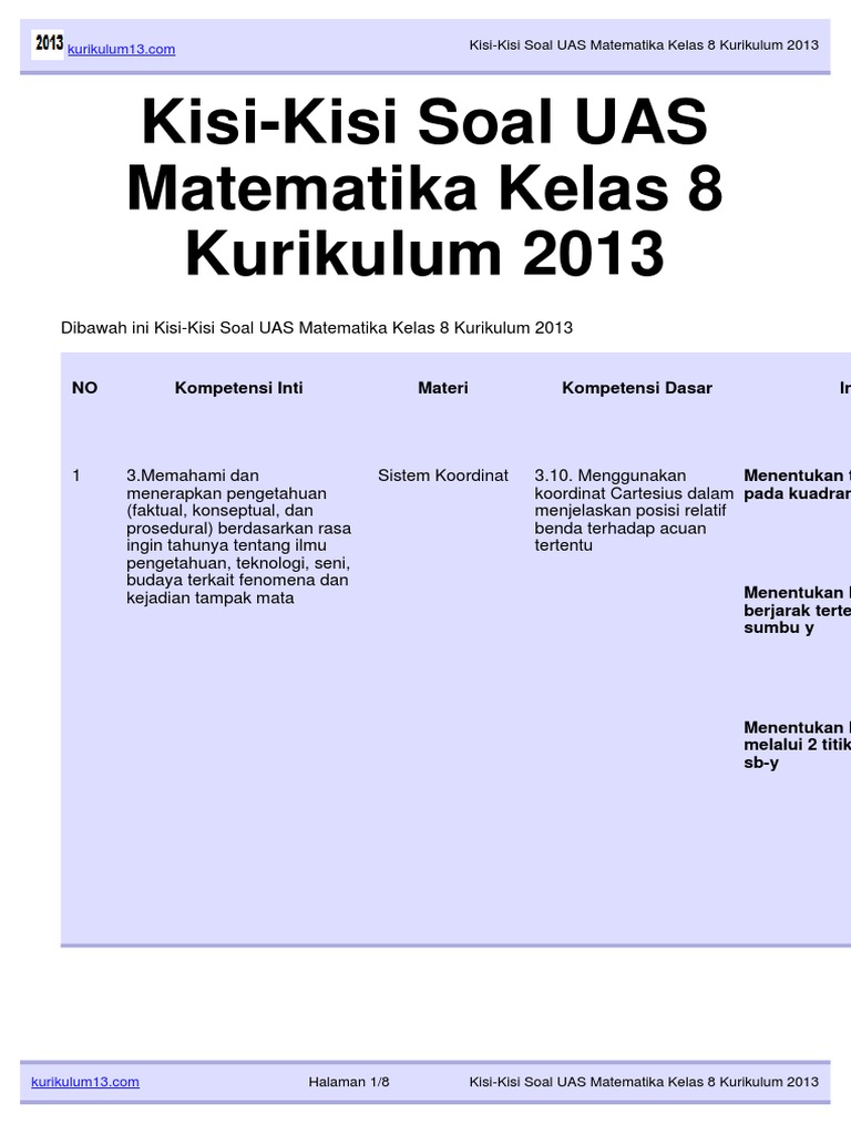 Kisi Kisi Soal Matematika Kelas Viii K13.pdf