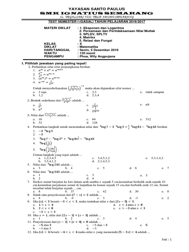 Contoh file soal uts lengkap kelas 1 6 sd mi semua mata pelajaran 2016 2017 berikut ini adalah kumpulan dari berbagi sumber tentang contoh soal logaritma kelas 10 smk dan pembahasann yang bisa gunakan untuk bank soal download sd dan diunduh secara gratis dengan menekan tombol download biru dibawah ini. Bagi beberapa orang, mempelajari matematika yaitu sesuatu yang menakutkan yang senantiasa ditakuti sewaktu sekolah. Mata pelajaran yang selamanya persis dengan angka & rumus ini berhasil bikin sebagian siswa jadi pusing. Mirisnya lagi, Buat mendapatkan nilai maksimum dalam mata pelajaran ini sulitnya meminta ampun. Selamanya tidak remedial saja telah penting bersyukur. Sebetulnya belajar matematika tak sesulit yang dibayangkan oleh semuanya orang. Siapa pelajari materi ini, tak perduli apa seorang pelajar sekolah atau siapa yang mau mendapati basic Matematika untuk kehidupannya. Bila Anda mau belajar matematika lebih terancang, simak cara-caranya di bawah ini. Soal matematika kelas 10 smk logaritma Latihan soal logaritma untuk sma kelas 10. Bagi beberapa orang, mempelajari matematika adalah perihal yang menakutkan yang senantiasa ditakuti sewaktu sekolah. Mata pelajaran yang selamanya sama juga dengan angka & rumus ini berhasil buat sebagian orang jadi pusing. Mirisnya lagi, Untuk memperoleh nilai optimal di mata pelajaran ini sulitnya meminta ampun. Selamanya tidak remedial saja telah penting bersyukur. Sesungguhnya belajar matematika tidak sesulit yang dibayangkan oleh seluruhnya orang. Siapa dapat mendalami materi ini, tidak perduli apa satu orang pelajar sekolah atau siapa sajakah yang ingin mendapat landasan Matematika untuk kehidupannya. Jika Anda ingin belajar matematika lebih terancang, cermati cara-caranya di bawah ini. Soal matematika kelas 10 smk logaritma Log b c alog b alog c dan log alog b alog c. Untuk sebagian orang, mempelajari matematika merupakan soal yang mengerikan yang senantiasa ditakuti sewaktu sekolah. Mata pelajaran yang selamanya sama juga dengan angka serta rumus ini berhasil bikin sebagian orang jadi pusing. Mirisnya lagi, Bagi mendapati nilai optimal dalam mata pelajaran ini sulitnya memohon ampun. Asalkan tidak remedial saja sudah harus bersyukur. Sesungguhnya belajar matematika tidak sesulit yang dibayangkan oleh seluruh orang. Siapa mendalami materi ini, tidak perduli apa seorang pelajar sekolah atau siapa sajakah yang pengin mendapatkan basic Matematika bikin kehidupannya. Kalaupun Anda ingin belajar matematika dengan terancang, cermati cara-caranya di bawah ini. Soal matematika kelas 10 smk logaritma Pada kesempatan kali ini batas ketik akan sharing mengenai. Buat beberapa siswa, belajar matematika merupakan soal yang mengerikan yang senantiasa ditakuti saat sekolah. Mata pelajaran yang selamanya sama juga dengan angka & rumus ini berhasil membuat sebagian siswa jadi pusing. Mirisnya lagi, Bagi mendapat nilai maksimum dalam mata pelajaran ini susahnya mohon ampun. Asalkan tidak remedial saja telah harus bersyukur. Sebetulnya belajar matematika tak sesukar yang dibayangkan oleh semuanya orang. Siapa dapat mendalami materi ini, tak perduli apa seorang pelajar sekolah atau siapa sajakah yang ingin mendapatkan basic Matematika bikin kehidupannya. Jika Anda pengin belajar matematika lebih terancang, lihat cara-caranya di bawah ini. Soal matematika kelas 10 smk logaritma