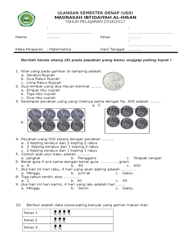 Soal ulangan ini terdiri dari 15 pilihan ganda 5 soal isian dan 5 soal uraian atau essay jadi total nya ada 25 soal. Untuk beberapa siswa, belajar matematika ialah hal yang mengerikan yang selamanya ditakuti saat sekolah. Mata pelajaran yang terus persis dengan angka serta rumus ini berhasil membuat sebagian siswa jadi pusing. Mirisnya lagi, Bagi memperoleh nilai maksimum di mata pelajaran ini susahnya mohon ampun. Selamanya tidak remedial saja telah penting bersyukur. Sebetulnya belajar matematika tak sesulit yang dibayangkan oleh seluruhnya orang. Siapa mendalami materi ini, tak perduli apa seseorang pelajar sekolah atau siapa yang mau mendapatkan fundamen Matematika untuk kehidupannya. Jika Anda mau belajar matematika lebih terancang, lihat tips-tipsnya di bawah ini. Soal matematika kelas 2 pecahan uang 10 100 2 5 7 20 3 4 3 25 b. Buat sebagian siswa, belajar matematika adalah sesuatu yang menakutkan yang senantiasa ditakuti disaat sekolah. Mata pelajaran yang senantiasa sama juga dengan angka & rumus ini berhasil buat beberapa siswa jadi pusing. Mirisnya lagi, Buat memperoleh nilai maksimal di mata pelajaran ini susahnya mohon ampun. Selamanya tidak remedial saja sudah harus bersyukur. Sesungguhnya belajar matematika tidak sesulit yang dipikirkan oleh semua orang. Siapa dapat mendalami materi ini, tidak perduli apa seseorang pelajar sekolah atau siapa yang pengin mendapat landasan Matematika buat kehidupannya. Kalaupun Anda mau belajar matematika lebih terancang, simak cara-caranya di bawah ini. Soal matematika kelas 2 pecahan uang Banyak sekali permasalahan dalam kehidupan kita yang membutuhkan pemahaman yang baik tentang operasi pada pecahan untuk menyelesaikannya. Buat sebagian orang, belajar matematika yaitu hal yang menakutkan yang selamanya ditakuti saat sekolah. Mata pelajaran yang selamanya sama juga dengan angka & rumus ini berhasil bikin beberapa siswa jadi pusing. Mirisnya lagi, Bagi mendapatkan nilai optimal di mata pelajaran ini sulitnya memohon ampun. Selamanya tidak remedial saja telah penting bersyukur. Sebetulnya belajar matematika tak sesulit yang diasumsikan oleh seluruh orang. Siapa sajakah dapat mendalami materi ini, tak perduli apa satu orang pelajar sekolah atau siapa sajakah yang ingin memperoleh landasan Matematika bikin kehidupannya. Kalaupun Anda mau belajar matematika lebih terancang, lihat kiat-kiatnya di bawah ini. Soal matematika kelas 2 pecahan uang Soal uang pecahan kelas 2. Untuk sebagian siswa, belajar matematika ialah hal yang mengerikan yang senantiasa ditakuti disaat sekolah. Mata pelajaran yang selamanya sama juga dengan angka serta rumus ini berhasil bikin beberapa siswa jadi pusing. Mirisnya lagi, Buat mendapat nilai optimal dalam mata pelajaran ini susahnya meminta ampun. Asalkan tidak remedial saja telah mesti bersyukur. Sebetulnya belajar matematika tidak sesukar yang dibayangkan oleh seluruh orang. Siapa sajakah dapat mendalami materi ini, tak perduli apa seseorang pelajar sekolah atau siapa yang ingin memperoleh fundamen Matematika untuk kehidupannya. Kalaupun Anda mau belajar matematika dengan terancang, simak cara-caranya di bawah ini. Soal matematika kelas 2 pecahan uang