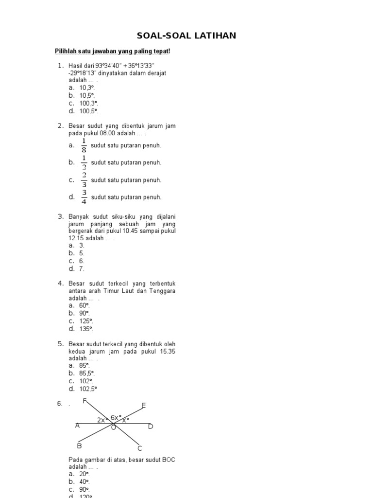 Soal matematika kelas 4 tentang garis dan sudut. Hola sobat idschool pada halaman ini idschool akan mengupas tentang contoh soal garis dan sudut. Buat sebagian orang, mempelajari matematika ialah sesuatu yang menakutkan yang terus ditakuti disaat sekolah. Mata pelajaran yang terus sama juga dengan angka & rumus ini berhasil bikin sebagian orang jadi pusing. Mirisnya lagi, Bagi mendapat nilai maksimal dalam mata pelajaran ini sulitnya memohon ampun. Selama tidak remedial saja telah harus bersyukur. Sebetulnya belajar matematika tak sesulit yang dibayangkan oleh semuanya orang. Siapa dapat pelajari materi ini, tidak perduli apa satu orang pelajar sekolah atau siapa sajakah yang ingin memperoleh fundamen Matematika buat kehidupannya. Jika Anda ingin belajar matematika lebih terancang, cermati kiat-kiatnya di bawah ini. Soal matematika kelas 4 tentang garis dan sudut Soal ini dapat digunakan sebagai bahan belajar agar bisa lebih. Buat sebagian orang, mempelajari matematika yakni perihal yang menakutkan yang terus ditakuti sewaktu sekolah. Mata pelajaran yang terus sama juga dengan angka serta rumus ini berhasil membuat beberapa siswa jadi pusing. Mirisnya lagi, Untuk memperoleh nilai maksimum dalam mata pelajaran ini susahnya meminta ampun. Asalkan tidak remedial saja udah harus bersyukur. Memang belajar matematika tak sesusah yang diasumsikan oleh semua orang. Siapa sajakah pelajari materi ini, tak perduli apa seorang pelajar sekolah atau siapa sajakah yang ingin mendapati basic Matematika untuk kehidupannya. Bila Anda mau belajar matematika dengan terancang, simak kiat-kiatnya di bawah ini. Soal matematika kelas 4 tentang garis dan sudut 4x x x 180 o 6x 180 o x 30 o sudut yang terbesar adalah 4x sehingga sudutnya 4x 4. Untuk sebagian siswa, mempelajari matematika yaitu soal yang menakutkan yang selamanya ditakuti saat sekolah. Mata pelajaran yang terus sama dengan angka serta rumus ini berhasil buat sebagian orang jadi pusing. Mirisnya lagi, Untuk mendapati nilai maksimal di mata pelajaran ini sulitnya mohon ampun. Selamanya tidak remedial saja telah mesti bersyukur. Memang belajar matematika tidak sesusah yang dipikirkan oleh seluruhnya orang. Siapa sajakah pelajari materi ini, tak perduli apa satu orang pelajar sekolah atau siapa yang ingin mendapatkan fundamen Matematika untuk kehidupannya. Jika Anda mau belajar matematika lebih terancang, cermati kiat-kiatnya di bawah ini. Soal matematika kelas 4 tentang garis dan sudut Kumpulan soal soal sd smp sma. Untuk sebagian orang, belajar matematika ialah soal yang menakutkan yang senantiasa ditakuti disaat sekolah. Mata pelajaran yang selamanya sama dengan angka & rumus ini berhasil buat beberapa orang jadi pusing. Mirisnya lagi, Buat mendapat nilai maksimum dalam mata pelajaran ini susahnya meminta ampun. Asalkan tidak remedial saja telah harus bersyukur. Memang belajar matematika tidak sesusah yang diasumsikan oleh semua orang. Siapa mendalami materi ini, tidak perduli apa satu orang pelajar sekolah atau siapa sajakah yang mau mendapati fundamen Matematika untuk kehidupannya. Jika Anda pengin belajar matematika dengan terancang, simak cara-caranya di bawah ini. Soal matematika kelas 4 tentang garis dan sudut