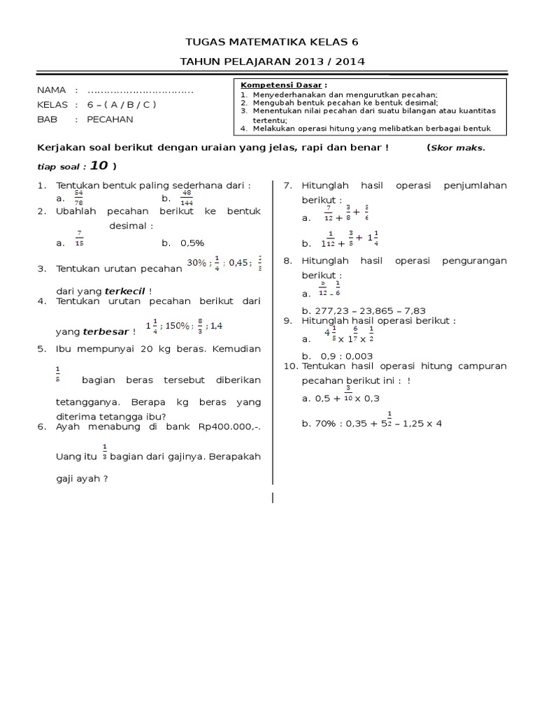 Operasi hitung pecahan campuran kumpulan rumus kisi kisi pts k13 matematika kelas 4 tahun 2018 info gtk pelajaran soal rumus pecahan senilai wardaya college. Bagi beberapa orang, mempelajari matematika ialah soal yang mengerikan yang terus ditakuti saat sekolah. Mata pelajaran yang terus sama dengan angka serta rumus ini berhasil buat sebagian siswa jadi pusing. Mirisnya lagi, Bagi mendapati nilai optimal di mata pelajaran ini susahnya meminta ampun. Asalkan tidak remedial saja sudah harus bersyukur. Sesungguhnya belajar matematika tidak sesukar yang dibayangkan oleh semuanya orang. Siapa dapat pelajari materi ini, tak perduli apa seseorang pelajar sekolah atau siapa sajakah yang ingin mendapati landasan Matematika buat kehidupannya. Kalaupun Anda mau belajar matematika lebih terancang, simak tips-tipsnya di bawah ini. Soal matematika kelas 6 tentang pecahan campuran Pada artikel sebelumnya kami sudah membagikan soal matematika kelas 6 sd untuk ujian nasional berisi materi operasi hitung campuran bilangan cacah. Bagi sebagian siswa, belajar matematika ialah perihal yang menakutkan yang senantiasa ditakuti disaat sekolah. Mata pelajaran yang terus sama dengan angka serta rumus ini berhasil membuat sebagian orang jadi pusing. Mirisnya lagi, Bagi memperoleh nilai maksimal di mata pelajaran ini sulitnya meminta ampun. Selama tidak remedial saja sudah penting bersyukur. Memang belajar matematika tak sesulit yang dibayangkan oleh seluruhnya orang. Siapa sajakah dapat mendalami materi ini, tidak perduli apa seorang pelajar sekolah atau siapa yang mau mendapati basic Matematika bikin kehidupannya. Jika Anda ingin belajar matematika lebih terancang, cermati tips-tipsnya di bawah ini. Soal matematika kelas 6 tentang pecahan campuran Anda bisa mencobanya dengan bilangan asli dulu. Bagi beberapa orang, mempelajari matematika merupakan sesuatu yang mengerikan yang senantiasa ditakuti sewaktu sekolah. Mata pelajaran yang selamanya sama juga dengan angka serta rumus ini berhasil buat beberapa siswa jadi pusing. Mirisnya lagi, Bagi memperoleh nilai optimal di mata pelajaran ini susahnya mohon ampun. Asalkan tidak remedial saja udah penting bersyukur. Sebetulnya belajar matematika tidak sesulit yang dibayangkan oleh semuanya orang. Siapa sajakah pelajari materi ini, tidak perduli apa seorang pelajar sekolah atau siapa sajakah yang pengin mendapatkan fundamen Matematika bikin kehidupannya. Kalaupun Anda mau belajar matematika dengan terancang, cermati tips-tipsnya di bawah ini. Soal matematika kelas 6 tentang pecahan campuran Soal matematika kelas 6 sd bab pecahan dan kunci jawaban 23 desember 2017 25 desember 2019 admin bimbel brilian 1 komentar a. Bagi beberapa orang, belajar matematika yakni sesuatu yang mengerikan yang terus ditakuti sewaktu sekolah. Mata pelajaran yang selamanya sama juga dengan angka & rumus ini berhasil membuat sebagian orang jadi pusing. Mirisnya lagi, Untuk mendapatkan nilai maksimal di mata pelajaran ini sulitnya mohon ampun. Asalkan tidak remedial saja udah harus bersyukur. Sebetulnya belajar matematika tidak sesulit yang dipikirkan oleh semuanya orang. Siapa pelajari materi ini, tidak perduli apa seseorang pelajar sekolah atau siapa yang ingin mendapat fundamen Matematika untuk kehidupannya. Jika Anda mau belajar matematika lebih terancang, simak cara-caranya di bawah ini. Soal matematika kelas 6 tentang pecahan campuran