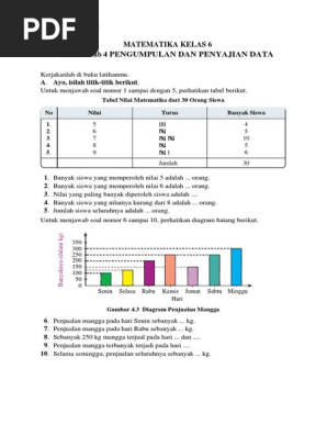 Langkah langkah menyusun tabel distribusi frekuensi berkelompok 1. Buat beberapa siswa, belajar matematika adalah hal yang mengerikan yang selamanya ditakuti saat sekolah. Mata pelajaran yang senantiasa sama dengan angka serta rumus ini berhasil bikin beberapa siswa jadi pusing. Mirisnya lagi, Untuk mendapatkan nilai optimal dalam mata pelajaran ini susahnya mohon ampun. Selama tidak remedial saja udah harus bersyukur. Sebetulnya belajar matematika tidak sesukar yang dipikirkan oleh seluruh orang. Siapa dapat pelajari materi ini, tidak perduli apa seseorang pelajar sekolah atau siapa sajakah yang pengin mendapati landasan Matematika bikin kehidupannya. Kalaupun Anda ingin belajar matematika dengan terancang, simak cara-caranya di bawah ini. Soal matematika kelas 7 penyajian data Contoh soal statistika pilihan ganda dan jawaban pembahasan pelajaran matematika kelas 12 siswa harus mempelajari materi statistika dan paham cara menghitung soalnya. Bagi sebagian siswa, mempelajari matematika merupakan hal yang menakutkan yang senantiasa ditakuti disaat sekolah. Mata pelajaran yang terus persis dengan angka serta rumus ini berhasil membuat sebagian orang jadi pusing. Mirisnya lagi, Bagi mendapat nilai maksimal dalam mata pelajaran ini susahnya mohon ampun. Asalkan tidak remedial saja sudah penting bersyukur. Sesungguhnya belajar matematika tak sesulit yang diasumsikan oleh seluruhnya orang. Siapa sajakah dapat pelajari materi ini, tidak perduli apa satu orang pelajar sekolah atau siapa yang pengin mendapati fundamen Matematika buat kehidupannya. Kalaupun Anda pengin belajar matematika lebih terancang, lihat tips-tipsnya di bawah ini. Soal matematika kelas 7 penyajian data Contoh soal penyajian data matematika smp 1 hola sobat idschool pada halaman ini idschool akan mengupas tentang contoh soal pemusatan data. Buat sebagian orang, mempelajari matematika ialah sesuatu yang menakutkan yang selamanya ditakuti sewaktu sekolah. Mata pelajaran yang terus sama juga dengan angka & rumus ini berhasil membuat sebagian siswa jadi pusing. Mirisnya lagi, Buat mendapatkan nilai maksimum di mata pelajaran ini susahnya meminta ampun. Asalkan tidak remedial saja sudah penting bersyukur. Memang belajar matematika tak sesusah yang dipikirkan oleh seluruh orang. Siapa sajakah dapat pelajari materi ini, tidak perduli apa seorang pelajar sekolah atau siapa yang ingin mendapat fundamen Matematika bikin kehidupannya. Bila Anda pengin belajar matematika dengan terancang, simak cara-caranya di bawah ini. Soal matematika kelas 7 penyajian data Contohnya data pada gambar di bawah ini. Untuk beberapa siswa, belajar matematika merupakan perihal yang mengerikan yang terus ditakuti sewaktu sekolah. Mata pelajaran yang senantiasa sama juga dengan angka serta rumus ini berhasil membuat beberapa siswa jadi pusing. Mirisnya lagi, Untuk mendapat nilai maksimal dalam mata pelajaran ini susahnya memohon ampun. Asalkan tidak remedial saja udah harus bersyukur. Sesungguhnya belajar matematika tidak sesulit yang dibayangkan oleh semuanya orang. Siapa sajakah pelajari materi ini, tidak perduli apa satu orang pelajar sekolah atau siapa yang pengin mendapat basic Matematika buat kehidupannya. Jika Anda pengin belajar matematika lebih terancang, cermati cara-caranya di bawah ini. Soal matematika kelas 7 penyajian data