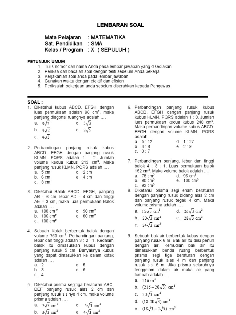Sesuai dengan kisi kisi ukk smp mts 2013 soal soal ukk tidak akan jauh berbeda dengan tahun lalu. Bagi beberapa siswa, belajar matematika ialah perihal yang menakutkan yang selamanya ditakuti sewaktu sekolah. Mata pelajaran yang terus sama dengan angka serta rumus ini berhasil bikin beberapa orang jadi pusing. Mirisnya lagi, Bagi mendapat nilai optimal di mata pelajaran ini susahnya memohon ampun. Selama tidak remedial saja sudah harus bersyukur. Memang belajar matematika tidak sesukar yang dibayangkan oleh seluruhnya orang. Siapa sajakah pelajari materi ini, tak perduli apa seorang pelajar sekolah atau siapa yang ingin mendapatkan landasan Matematika untuk kehidupannya. Kalaupun Anda pengin belajar matematika dengan terancang, simak tips-tipsnya di bawah ini. Soal matematika kelas 8 kubus dan balok Contoh file berikut ini adalah kumpulan dari berbagi sumber tentang contoh soal matematika smp kelas 8 kubus dan balok yang bisa gunakan untuk dan diunduh secara gratis dengan menekan tombol download biru dibawah ini. Bagi sebagian orang, belajar matematika ialah sesuatu yang menakutkan yang senantiasa ditakuti sewaktu sekolah. Mata pelajaran yang senantiasa sama dengan angka & rumus ini berhasil membuat sebagian siswa jadi pusing. Mirisnya lagi, Buat memperoleh nilai optimal di mata pelajaran ini susahnya mohon ampun. Selamanya tidak remedial saja udah mesti bersyukur. Sesungguhnya belajar matematika tidak sesusah yang dibayangkan oleh semuanya orang. Siapa sajakah mendalami materi ini, tidak perduli apa seorang pelajar sekolah atau siapa sajakah yang mau memperoleh basic Matematika bikin kehidupannya. Kalaupun Anda pengin belajar matematika lebih terancang, simak tips-tipsnya di bawah ini. Soal matematika kelas 8 kubus dan balok 150 cm 10 cm b. Untuk sebagian orang, belajar matematika ialah hal yang mengerikan yang terus ditakuti sewaktu sekolah. Mata pelajaran yang selamanya persis dengan angka & rumus ini berhasil buat beberapa siswa jadi pusing. Mirisnya lagi, Untuk mendapati nilai maksimum di mata pelajaran ini sulitnya memohon ampun. Selama tidak remedial saja sudah mesti bersyukur. Memang belajar matematika tidak sesukar yang dipikirkan oleh semuanya orang. Siapa sajakah dapat mendalami materi ini, tak perduli apa seorang pelajar sekolah atau siapa sajakah yang pengin mendapat landasan Matematika untuk kehidupannya. Bila Anda mau belajar matematika lebih terancang, cermati tips-tipsnya di bawah ini. Soal matematika kelas 8 kubus dan balok Silahkan anda klik linknya untuk menuju halaman yang ingin anda cari. Untuk sebagian orang, belajar matematika yaitu soal yang mengerikan yang selamanya ditakuti sewaktu sekolah. Mata pelajaran yang selamanya sama juga dengan angka & rumus ini berhasil buat sebagian orang jadi pusing. Mirisnya lagi, Untuk memperoleh nilai maksimum di mata pelajaran ini susahnya meminta ampun. Asalkan tidak remedial saja sudah mesti bersyukur. Sebetulnya belajar matematika tak sesulit yang diasumsikan oleh seluruh orang. Siapa sajakah dapat pelajari materi ini, tidak perduli apa seseorang pelajar sekolah atau siapa sajakah yang ingin mendapat fundamen Matematika buat kehidupannya. Jika Anda pengin belajar matematika dengan terancang, cermati cara-caranya di bawah ini. Soal matematika kelas 8 kubus dan balok