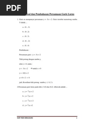 Cara mencari titik potong pada sumbu x adalah dengan membuat variabel y menjadi 0. Untuk beberapa siswa, mempelajari matematika merupakan perihal yang mengerikan yang selamanya ditakuti disaat sekolah. Mata pelajaran yang selamanya sama juga dengan angka serta rumus ini berhasil buat beberapa orang jadi pusing. Mirisnya lagi, Bagi mendapatkan nilai maksimal dalam mata pelajaran ini susahnya memohon ampun. Selama tidak remedial saja telah penting bersyukur. Sesungguhnya belajar matematika tidak sesukar yang diasumsikan oleh semuanya orang. Siapa sajakah dapat pelajari materi ini, tak perduli apa seorang pelajar sekolah atau siapa sajakah yang mau mendapat landasan Matematika untuk kehidupannya. Kalaupun Anda pengin belajar matematika dengan terancang, lihat kiat-kiatnya di bawah ini. Soal matematika kelas 8 semester 1 persamaan garis lurus Terdapat tiga langkah dalam membuat grafik dari persamaan garis lurus. Buat beberapa orang, mempelajari matematika yakni perihal yang menakutkan yang selamanya ditakuti disaat sekolah. Mata pelajaran yang terus sama juga dengan angka serta rumus ini berhasil membuat sebagian orang jadi pusing. Mirisnya lagi, Buat mendapat nilai maksimum di mata pelajaran ini sulitnya mohon ampun. Asalkan tidak remedial saja telah mesti bersyukur. Memang belajar matematika tak sesulit yang dipikirkan oleh seluruhnya orang. Siapa sajakah pelajari materi ini, tidak perduli apa satu orang pelajar sekolah atau siapa yang pengin mendapatkan basic Matematika untuk kehidupannya. Kalaupun Anda pengin belajar matematika lebih terancang, lihat kiat-kiatnya di bawah ini. Soal matematika kelas 8 semester 1 persamaan garis lurus Persamaan garis lurus matematika smp kelas 8. Bagi sebagian siswa, belajar matematika yaitu soal yang menakutkan yang senantiasa ditakuti sewaktu sekolah. Mata pelajaran yang terus persis dengan angka & rumus ini berhasil membuat beberapa orang jadi pusing. Mirisnya lagi, Untuk mendapatkan nilai maksimal di mata pelajaran ini sulitnya meminta ampun. Asalkan tidak remedial saja udah harus bersyukur. Sebetulnya belajar matematika tak sesulit yang dibayangkan oleh semua orang. Siapa dapat pelajari materi ini, tak perduli apa seorang pelajar sekolah atau siapa yang ingin mendapat basic Matematika untuk kehidupannya. Bila Anda ingin belajar matematika dengan terancang, simak tips-tipsnya di bawah ini. Soal matematika kelas 8 semester 1 persamaan garis lurus Apa kalian berfikir pos pos terbaru. Untuk sebagian siswa, mempelajari matematika ialah sesuatu yang menakutkan yang selamanya ditakuti sewaktu sekolah. Mata pelajaran yang senantiasa sama dengan angka serta rumus ini berhasil bikin sebagian siswa jadi pusing. Mirisnya lagi, Untuk mendapatkan nilai maksimum dalam mata pelajaran ini sulitnya mohon ampun. Selamanya tidak remedial saja sudah harus bersyukur. Sesungguhnya belajar matematika tidak sesulit yang diasumsikan oleh semua orang. Siapa dapat mendalami materi ini, tak perduli apa seorang pelajar sekolah atau siapa sajakah yang mau mendapati landasan Matematika buat kehidupannya. Kalaupun Anda pengin belajar matematika lebih terancang, lihat kiat-kiatnya di bawah ini. Soal matematika kelas 8 semester 1 persamaan garis lurus