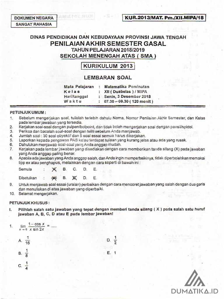 Doc bahan ajar matematika kelas xii peminatan indes. Bagi sebagian siswa, belajar matematika ialah hal yang mengerikan yang terus ditakuti saat sekolah. Mata pelajaran yang senantiasa sama dengan angka serta rumus ini berhasil membuat beberapa siswa jadi pusing. Mirisnya lagi, Buat mendapatkan nilai maksimum dalam mata pelajaran ini sulitnya mohon ampun. Asalkan tidak remedial saja telah harus bersyukur. Sebetulnya belajar matematika tidak sesusah yang dibayangkan oleh semua orang. Siapa dapat pelajari materi ini, tidak perduli apa seseorang pelajar sekolah atau siapa sajakah yang ingin mendapat landasan Matematika buat kehidupannya. Jika Anda pengin belajar matematika dengan terancang, simak cara-caranya di bawah ini. Soal matematika peminatan kelas 12 pdf Semoga membantu dan bermanfaat. Untuk sebagian siswa, mempelajari matematika ialah soal yang menakutkan yang selamanya ditakuti saat sekolah. Mata pelajaran yang terus persis dengan angka serta rumus ini berhasil buat beberapa siswa jadi pusing. Mirisnya lagi, Bagi memperoleh nilai maksimal di mata pelajaran ini sulitnya mohon ampun. Asalkan tidak remedial saja udah penting bersyukur. Sebetulnya belajar matematika tak sesulit yang dibayangkan oleh semuanya orang. Siapa sajakah mendalami materi ini, tidak perduli apa seorang pelajar sekolah atau siapa sajakah yang pengin mendapat landasan Matematika buat kehidupannya. Bila Anda mau belajar matematika lebih terancang, cermati tips-tipsnya di bawah ini. Soal matematika peminatan kelas 12 pdf Pada kesempatan ini m4th lab akan membahas materi limit fungsi trigonometri meliputi konsep contoh soal dan pembahasan. Untuk sebagian orang, mempelajari matematika ialah sesuatu yang menakutkan yang selamanya ditakuti sewaktu sekolah. Mata pelajaran yang senantiasa persis dengan angka & rumus ini berhasil buat sebagian siswa jadi pusing. Mirisnya lagi, Untuk mendapat nilai optimal di mata pelajaran ini sulitnya mohon ampun. Selama tidak remedial saja sudah penting bersyukur. Memang belajar matematika tidak sesusah yang dibayangkan oleh seluruhnya orang. Siapa sajakah dapat mendalami materi ini, tidak perduli apa seorang pelajar sekolah atau siapa sajakah yang mau mendapat basic Matematika untuk kehidupannya. Bila Anda ingin belajar matematika lebih terancang, lihat tips-tipsnya di bawah ini. Soal matematika peminatan kelas 12 pdf Silakan download soalnya dalam bentuk pdf di sini. Buat sebagian siswa, mempelajari matematika yakni hal yang menakutkan yang terus ditakuti disaat sekolah. Mata pelajaran yang selamanya sama juga dengan angka serta rumus ini berhasil membuat sebagian siswa jadi pusing. Mirisnya lagi, Bagi mendapati nilai maksimal dalam mata pelajaran ini sulitnya mohon ampun. Selama tidak remedial saja sudah harus bersyukur. Sesungguhnya belajar matematika tak sesukar yang dibayangkan oleh semua orang. Siapa mendalami materi ini, tak perduli apa seorang pelajar sekolah atau siapa yang pengin memperoleh fundamen Matematika buat kehidupannya. Jika Anda pengin belajar matematika lebih terancang, lihat kiat-kiatnya di bawah ini. Soal matematika peminatan kelas 12 pdf
