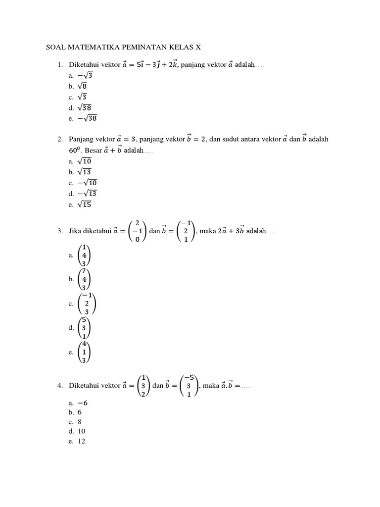 Pengertian vektor soal dan pembahasan vektor matematika sma kelas 10. Buat sebagian orang, belajar matematika merupakan soal yang mengerikan yang senantiasa ditakuti disaat sekolah. Mata pelajaran yang senantiasa sama dengan angka & rumus ini berhasil buat sebagian orang jadi pusing. Mirisnya lagi, Untuk mendapat nilai maksimal dalam mata pelajaran ini sulitnya meminta ampun. Asalkan tidak remedial saja sudah mesti bersyukur. Memang belajar matematika tak sesukar yang diasumsikan oleh semua orang. Siapa sajakah dapat pelajari materi ini, tak perduli apa seorang pelajar sekolah atau siapa sajakah yang ingin mendapati landasan Matematika bikin kehidupannya. Jika Anda mau belajar matematika lebih terancang, cermati kiat-kiatnya di bawah ini. Soal vektor matematika peminatan kelas 10 Tersedia juga kumpulan soal soal matematika peminatan kelas 10 untuk setiap bab yang bisa kamu download dalam format pdf sebagai bahan latihan soal ulangan. Untuk beberapa siswa, belajar matematika yaitu hal yang menakutkan yang terus ditakuti saat sekolah. Mata pelajaran yang senantiasa sama dengan angka serta rumus ini berhasil membuat sebagian siswa jadi pusing. Mirisnya lagi, Buat mendapati nilai optimal di mata pelajaran ini sulitnya memohon ampun. Asalkan tidak remedial saja udah harus bersyukur. Sebetulnya belajar matematika tak sesukar yang diasumsikan oleh seluruh orang. Siapa mendalami materi ini, tidak perduli apa satu orang pelajar sekolah atau siapa sajakah yang mau mendapat fundamen Matematika buat kehidupannya. Kalaupun Anda ingin belajar matematika dengan terancang, lihat cara-caranya di bawah ini. Soal vektor matematika peminatan kelas 10 Vektor merupakan salah satu materi matematika peminatan mathematics extended further yang dipelajari oleh siswa kelas x jurusan mipa tingkat sma secara singkat vektor merupakan besaran yang memiliki nilai sekaligus arah. Untuk sebagian siswa, belajar matematika merupakan hal yang menakutkan yang senantiasa ditakuti disaat sekolah. Mata pelajaran yang terus sama dengan angka serta rumus ini berhasil membuat sebagian orang jadi pusing. Mirisnya lagi, Buat mendapati nilai maksimum di mata pelajaran ini susahnya meminta ampun. Selamanya tidak remedial saja telah mesti bersyukur. Sebetulnya belajar matematika tak sesulit yang diasumsikan oleh semuanya orang. Siapa sajakah dapat mendalami materi ini, tak perduli apa satu orang pelajar sekolah atau siapa sajakah yang ingin mendapat fundamen Matematika bikin kehidupannya. Kalaupun Anda ingin belajar matematika dengan terancang, lihat cara-caranya di bawah ini. Soal vektor matematika peminatan kelas 10 Soal vektor matematika peminatan berikut ini adalah soal pts pat matematika peminatan kelas x semester 2 tentang vektor. Buat sebagian orang, mempelajari matematika ialah soal yang menakutkan yang senantiasa ditakuti saat sekolah. Mata pelajaran yang selamanya sama dengan angka & rumus ini berhasil buat beberapa orang jadi pusing. Mirisnya lagi, Untuk mendapat nilai maksimum dalam mata pelajaran ini sulitnya mohon ampun. Selamanya tidak remedial saja sudah harus bersyukur. Sebetulnya belajar matematika tidak sesulit yang diasumsikan oleh seluruhnya orang. Siapa sajakah dapat pelajari materi ini, tak perduli apa satu orang pelajar sekolah atau siapa yang ingin mendapat basic Matematika untuk kehidupannya. Kalaupun Anda pengin belajar matematika dengan terancang, simak kiat-kiatnya di bawah ini. Soal vektor matematika peminatan kelas 10